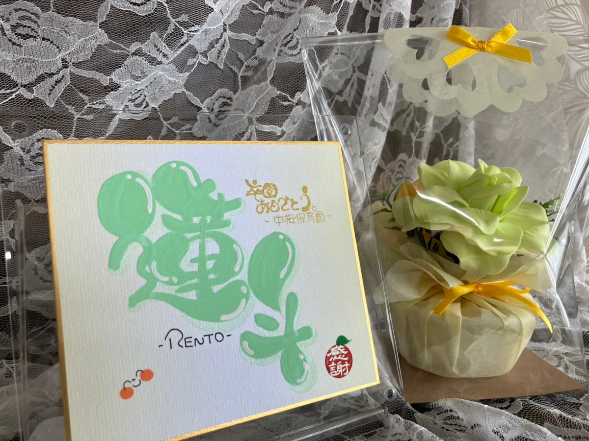 この商品は、お名前をモチーフにした筆文字アートのギフト商品です。